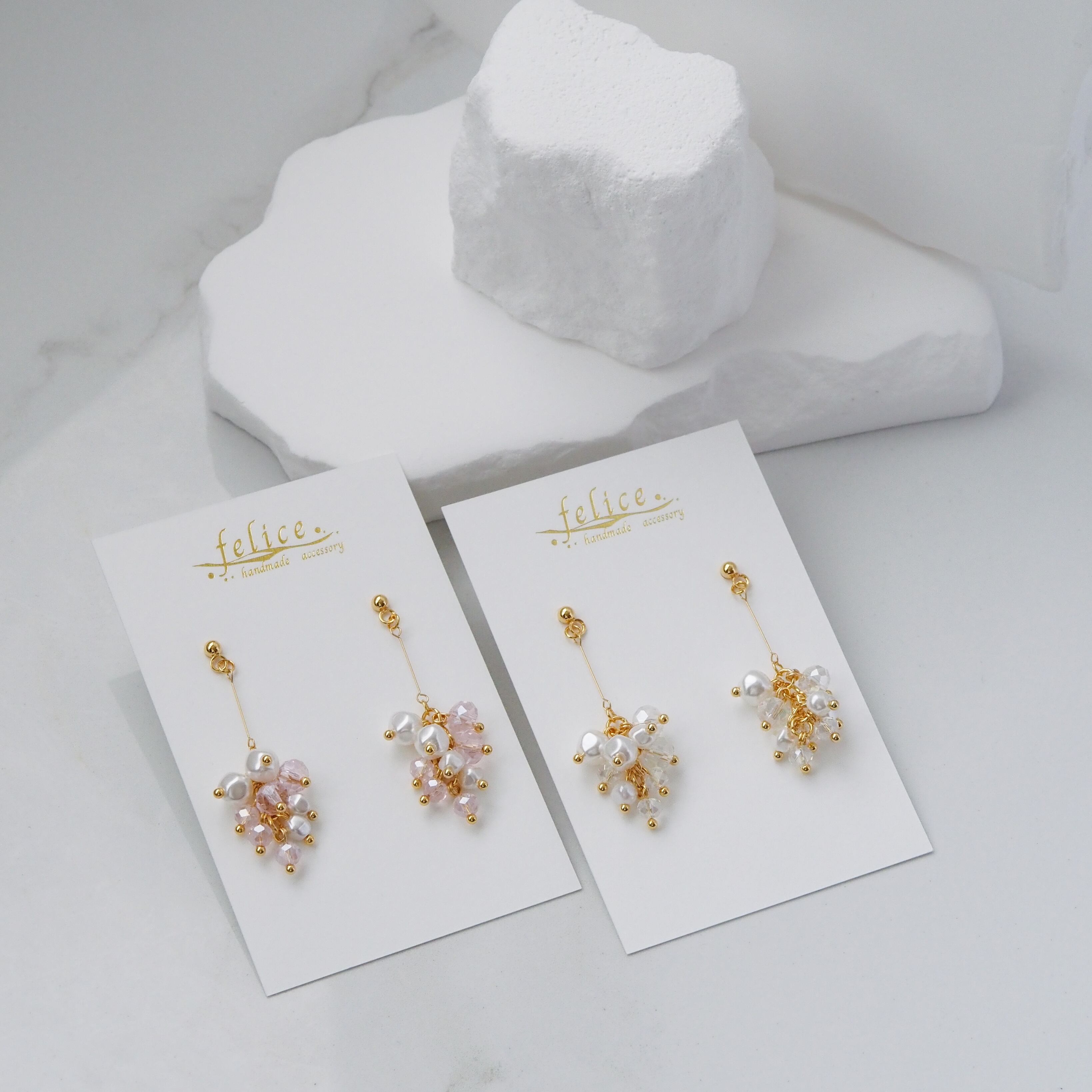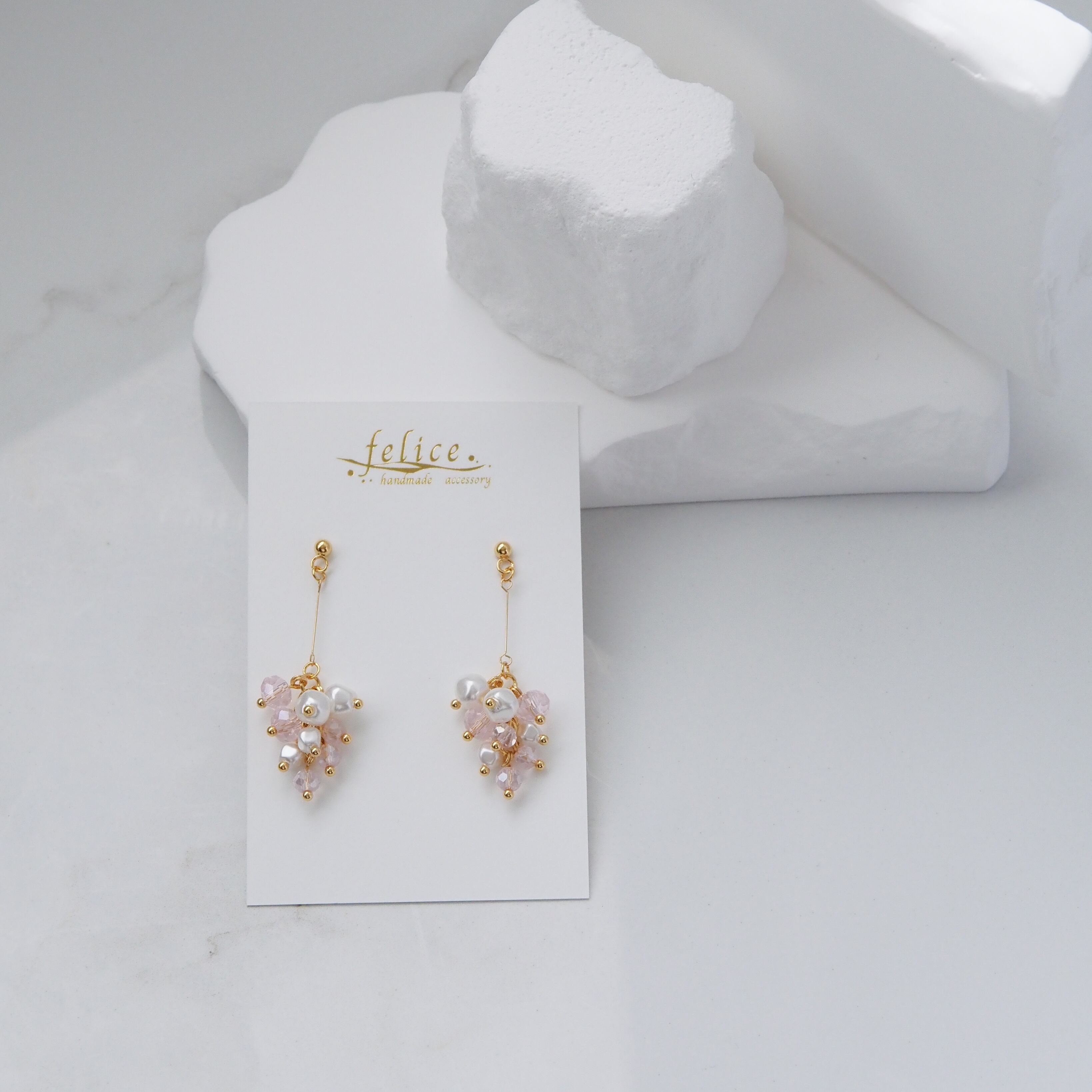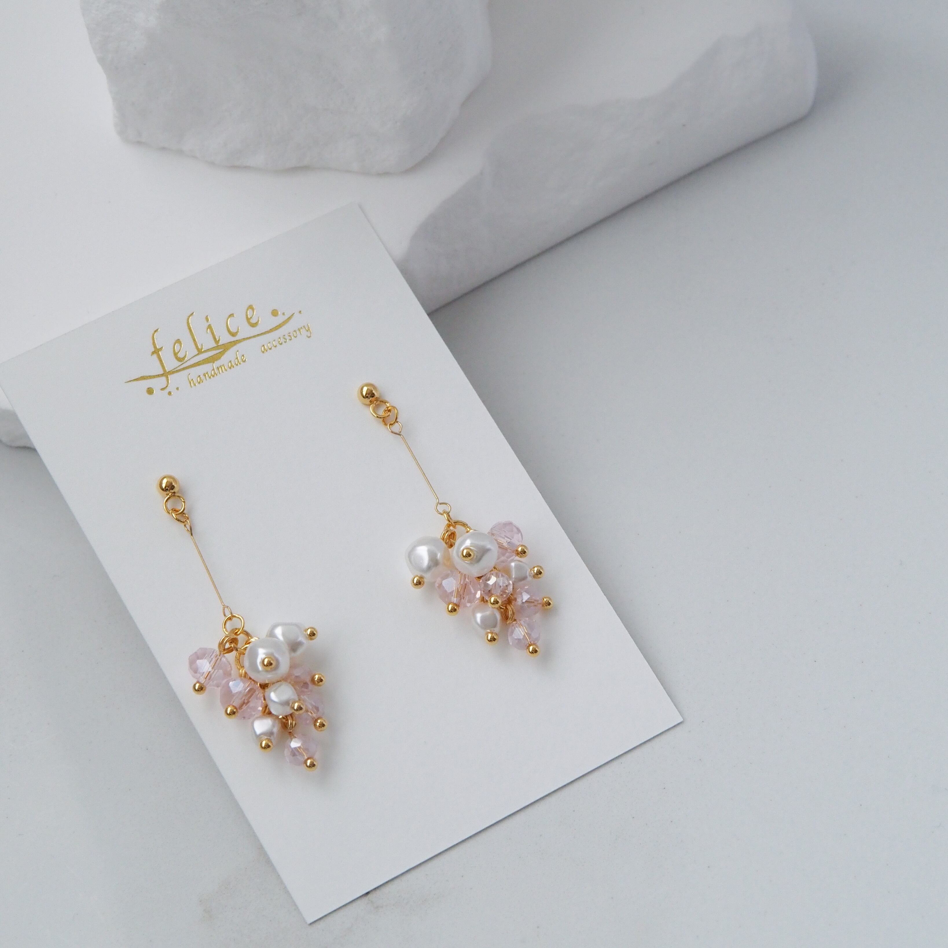 揺れるレジンピアスのハンドメイド通販 felice です。こちらは~ナチュラルドロップ ピンク ピアス〜の商品ページです。