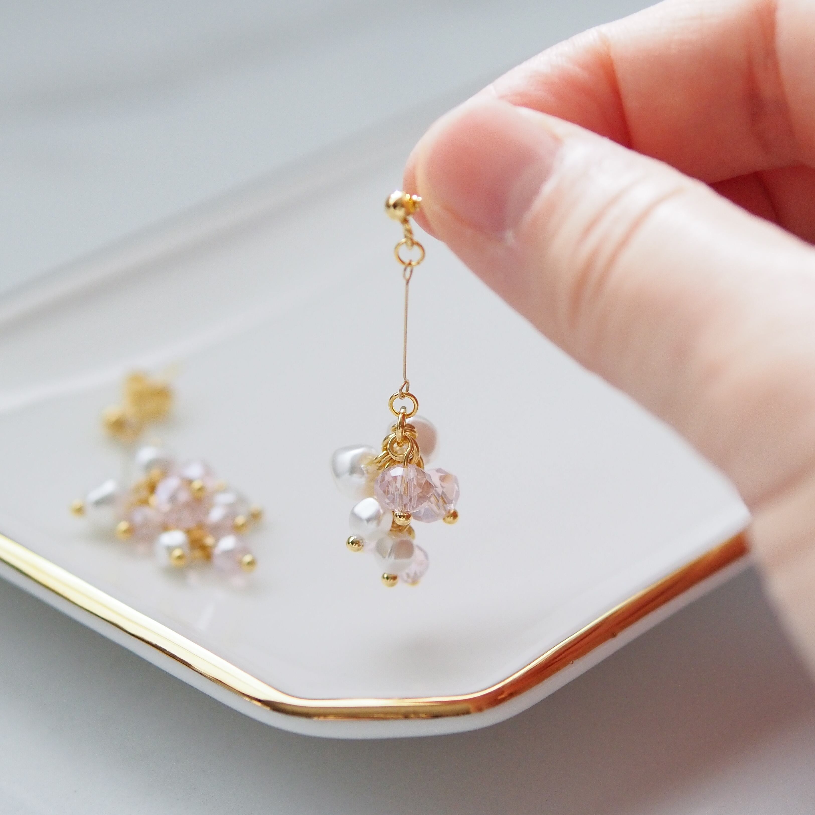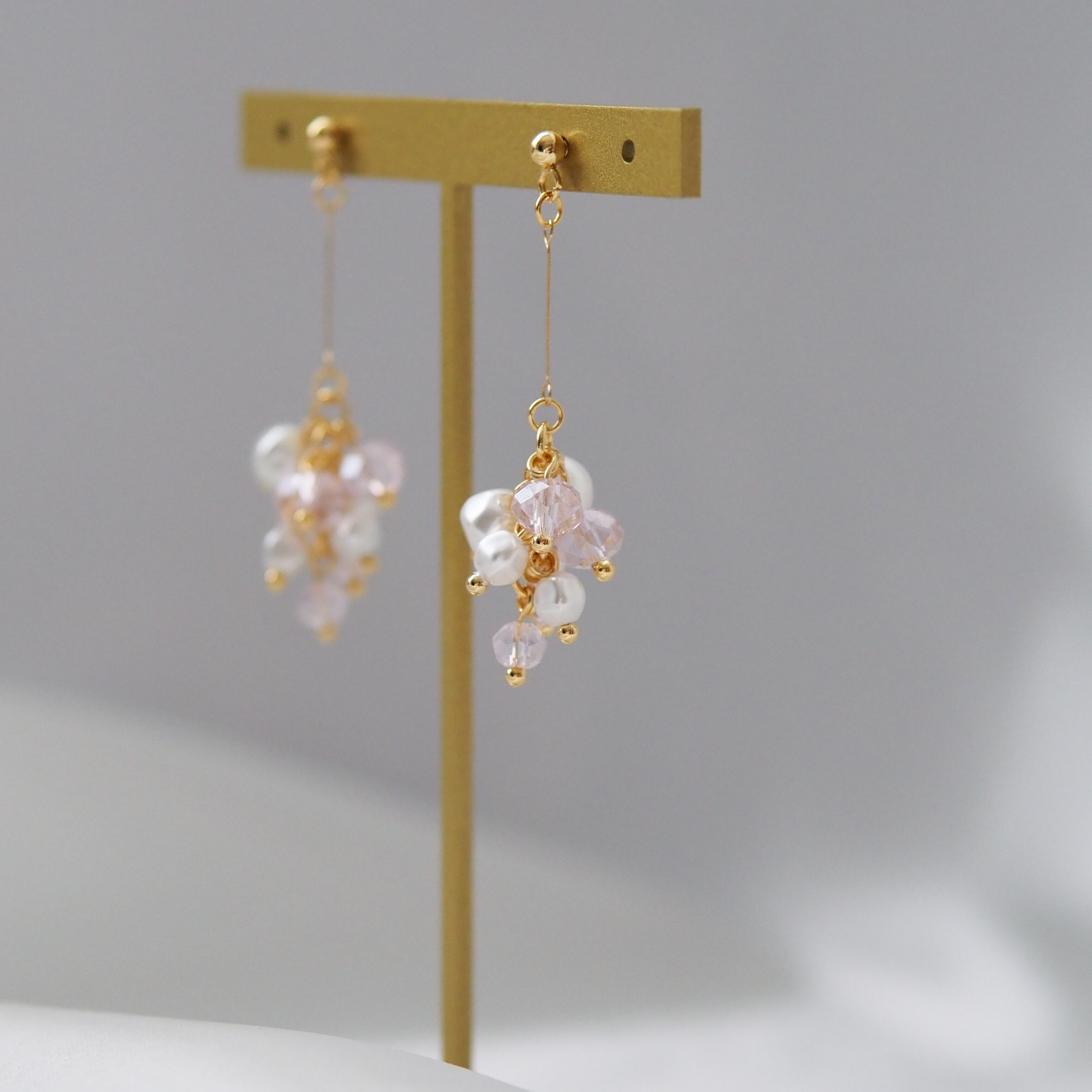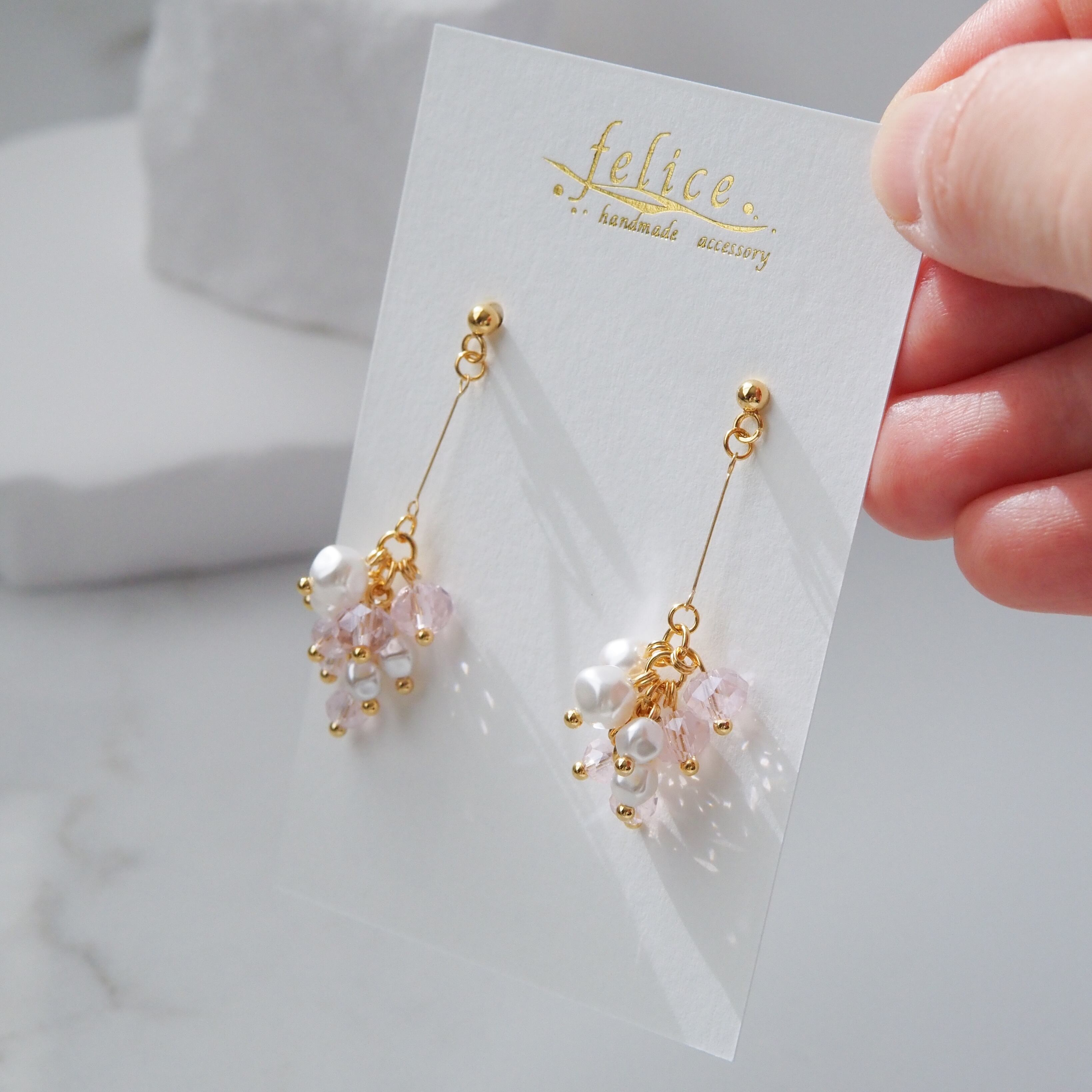 ナチュラルドロップ ピンク ピアス│揺れるレジンピアスのハンドメイド通販