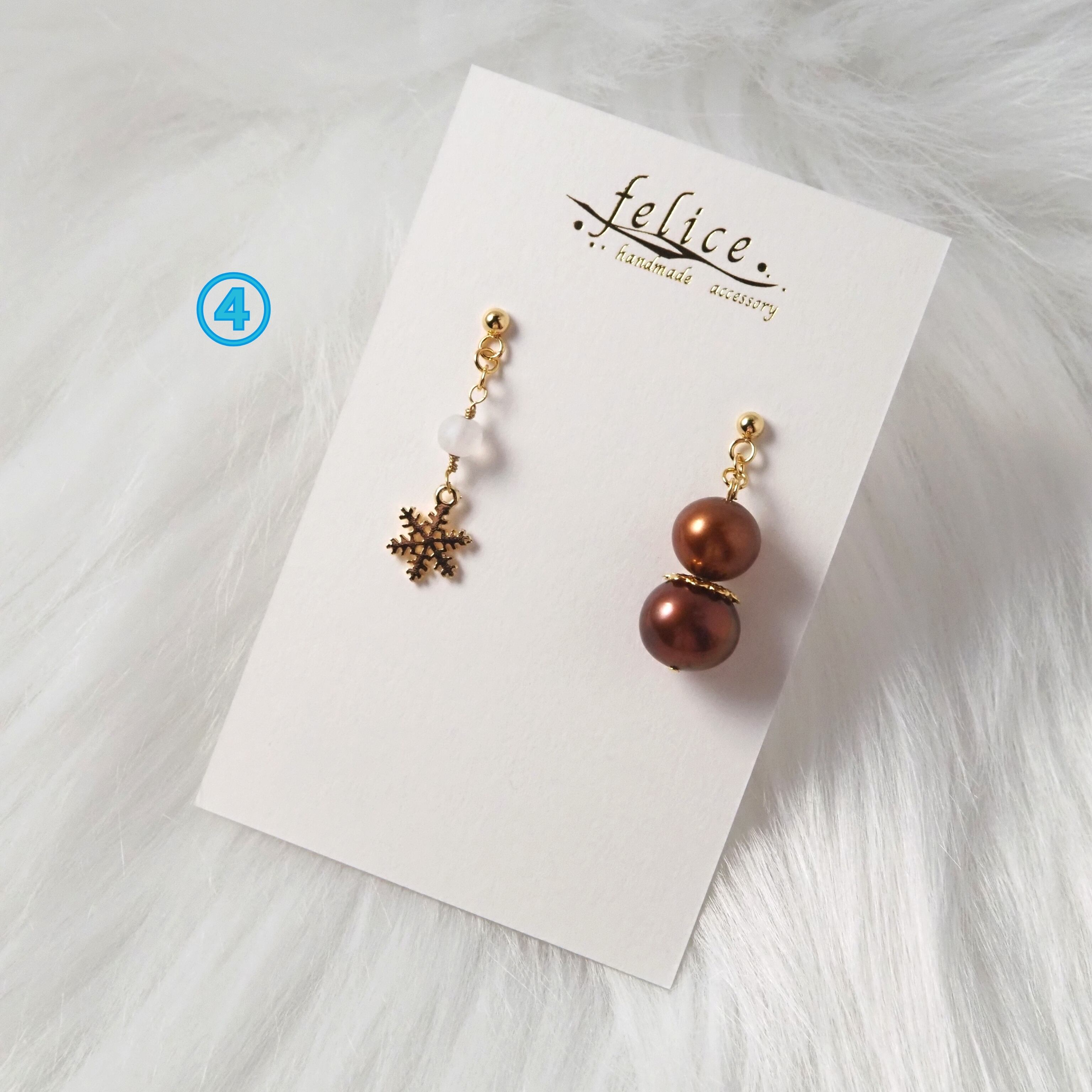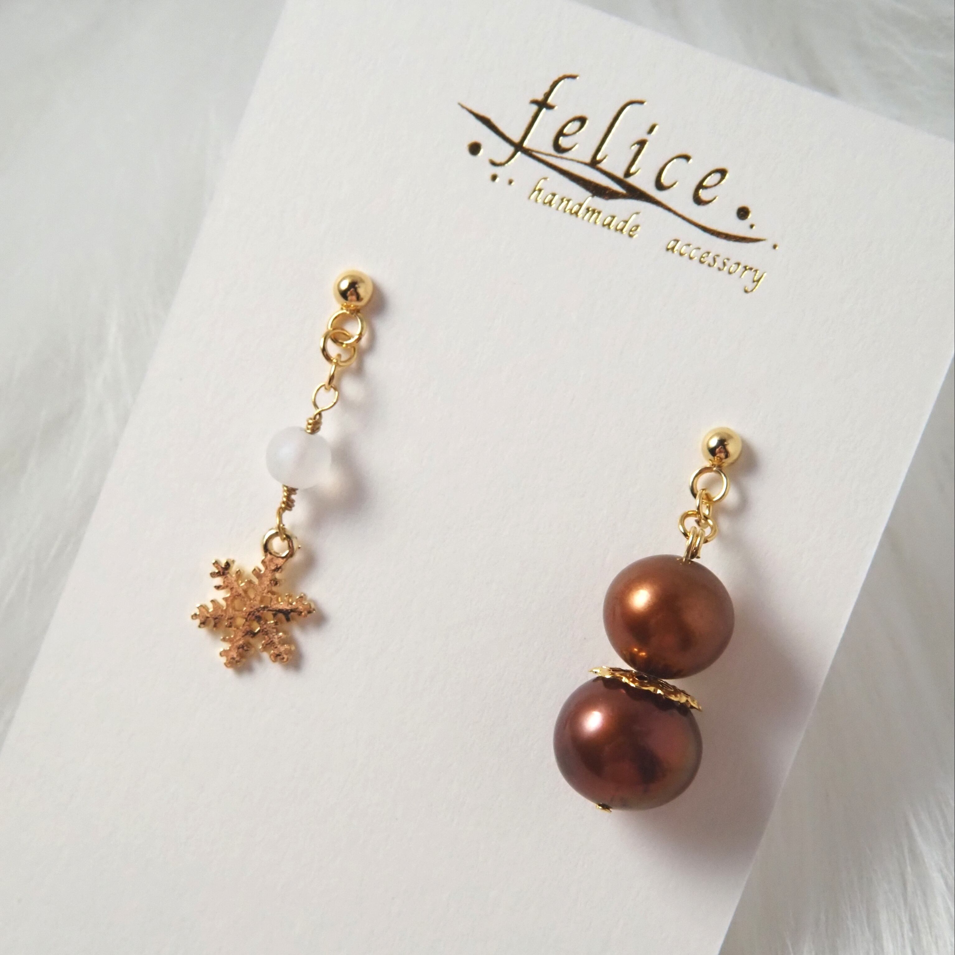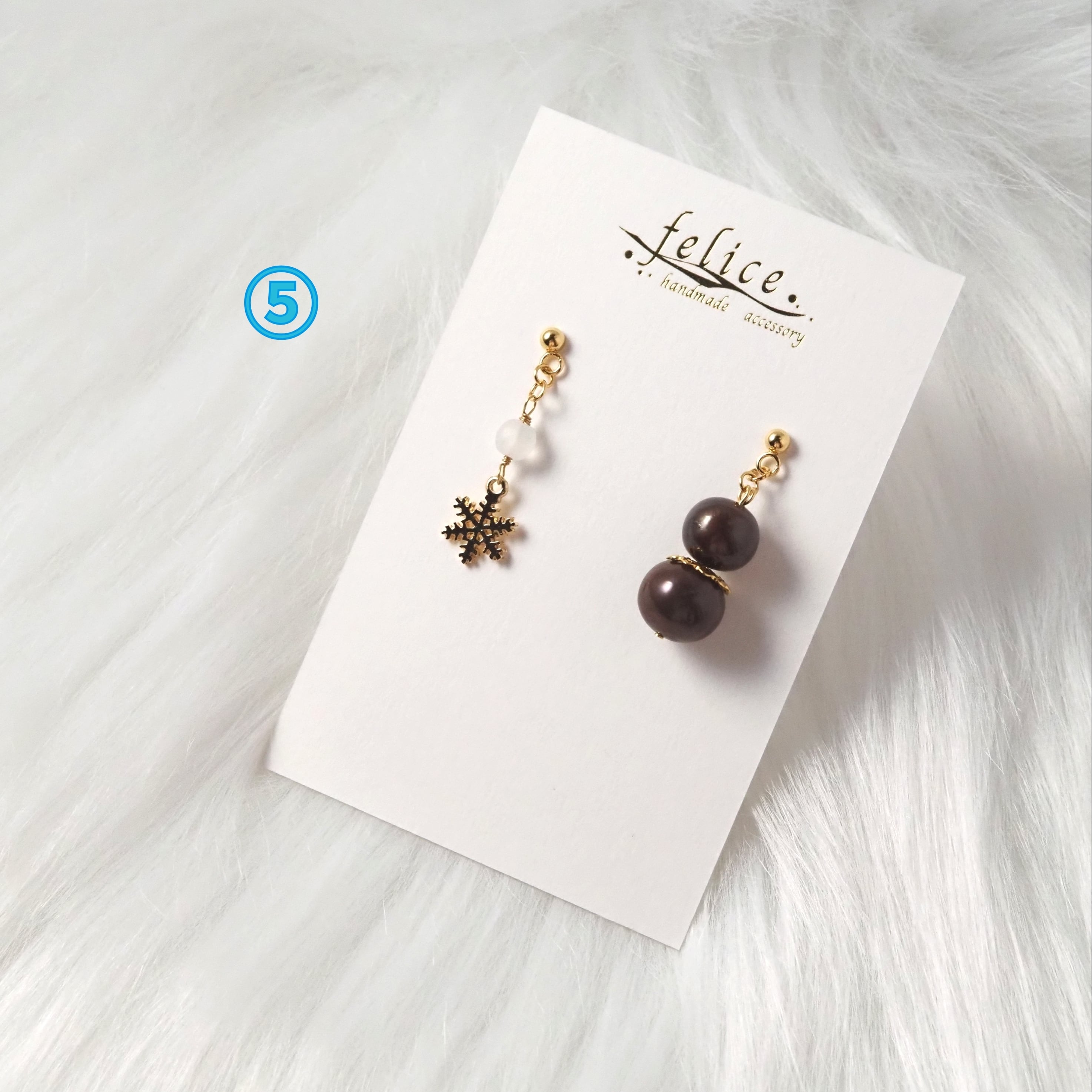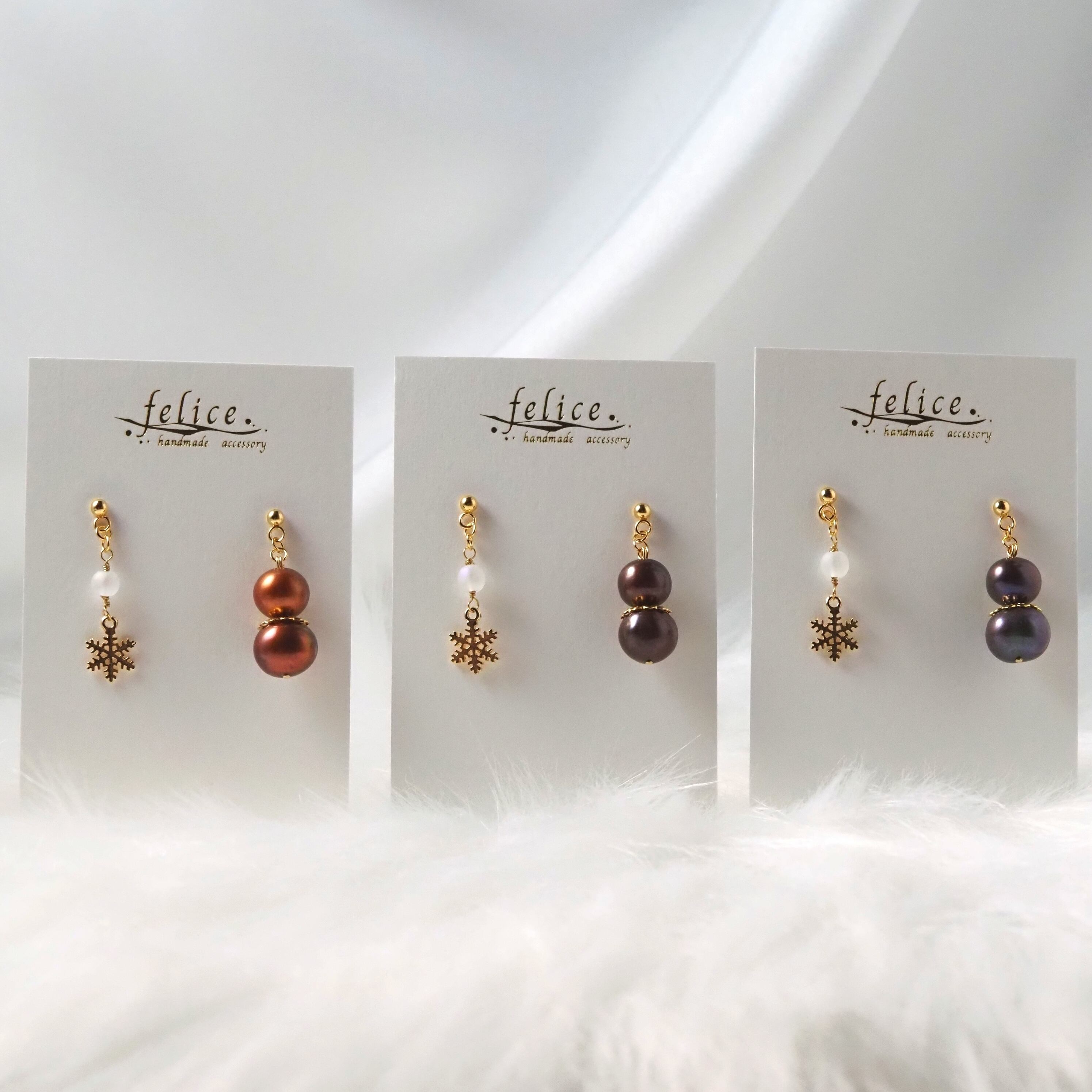 揺れるレジンピアスのハンドメイド通販 felice です。こちらは~雪だるまパール(④〜⑥) アシメデザイン〜の商品ページです。