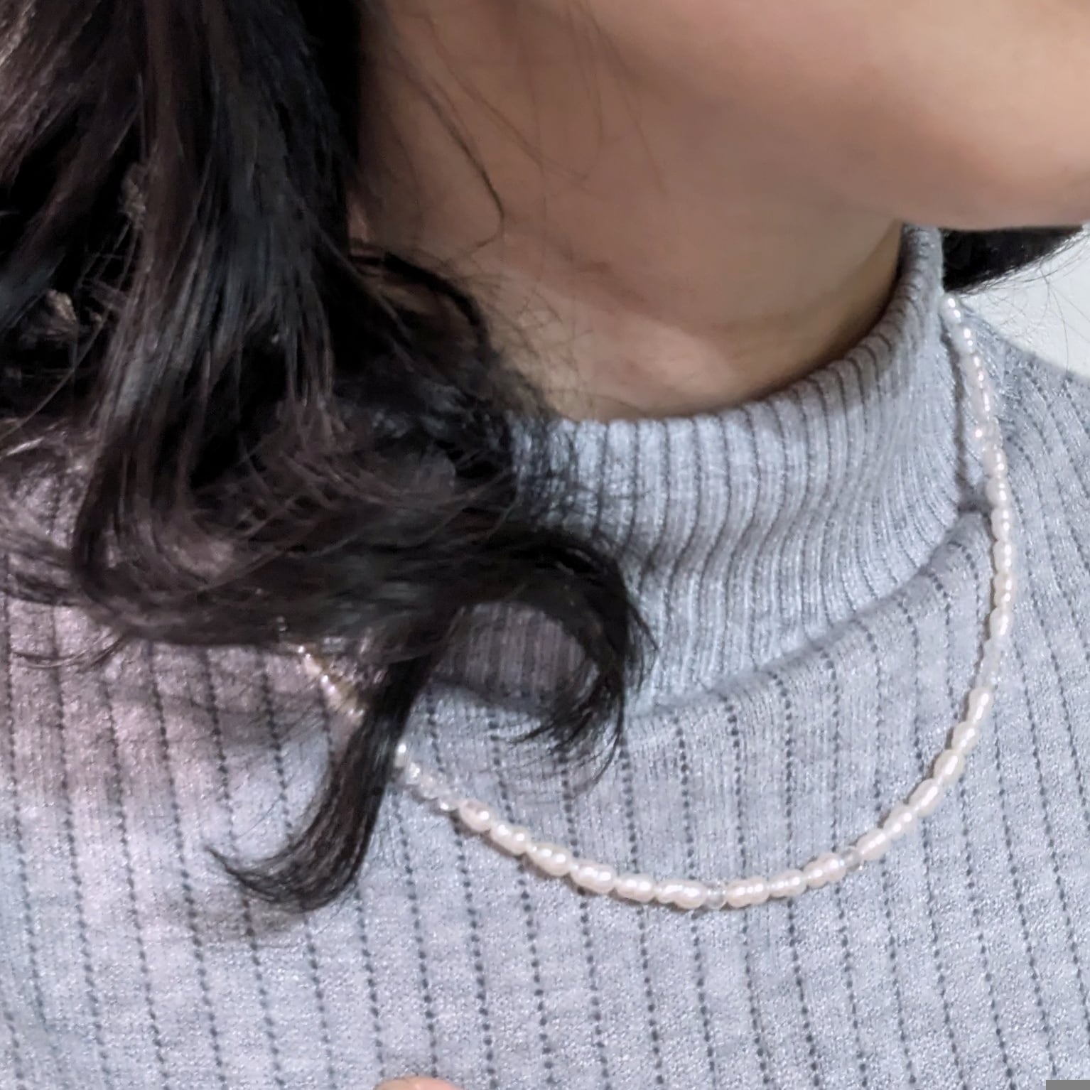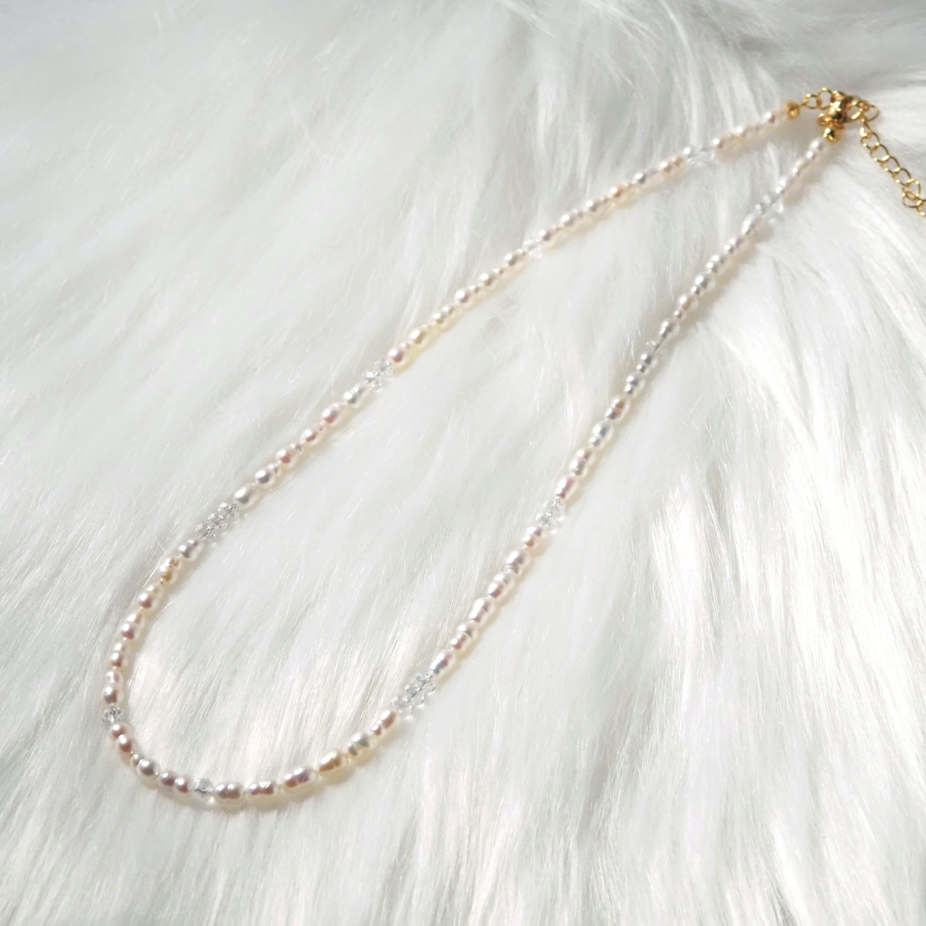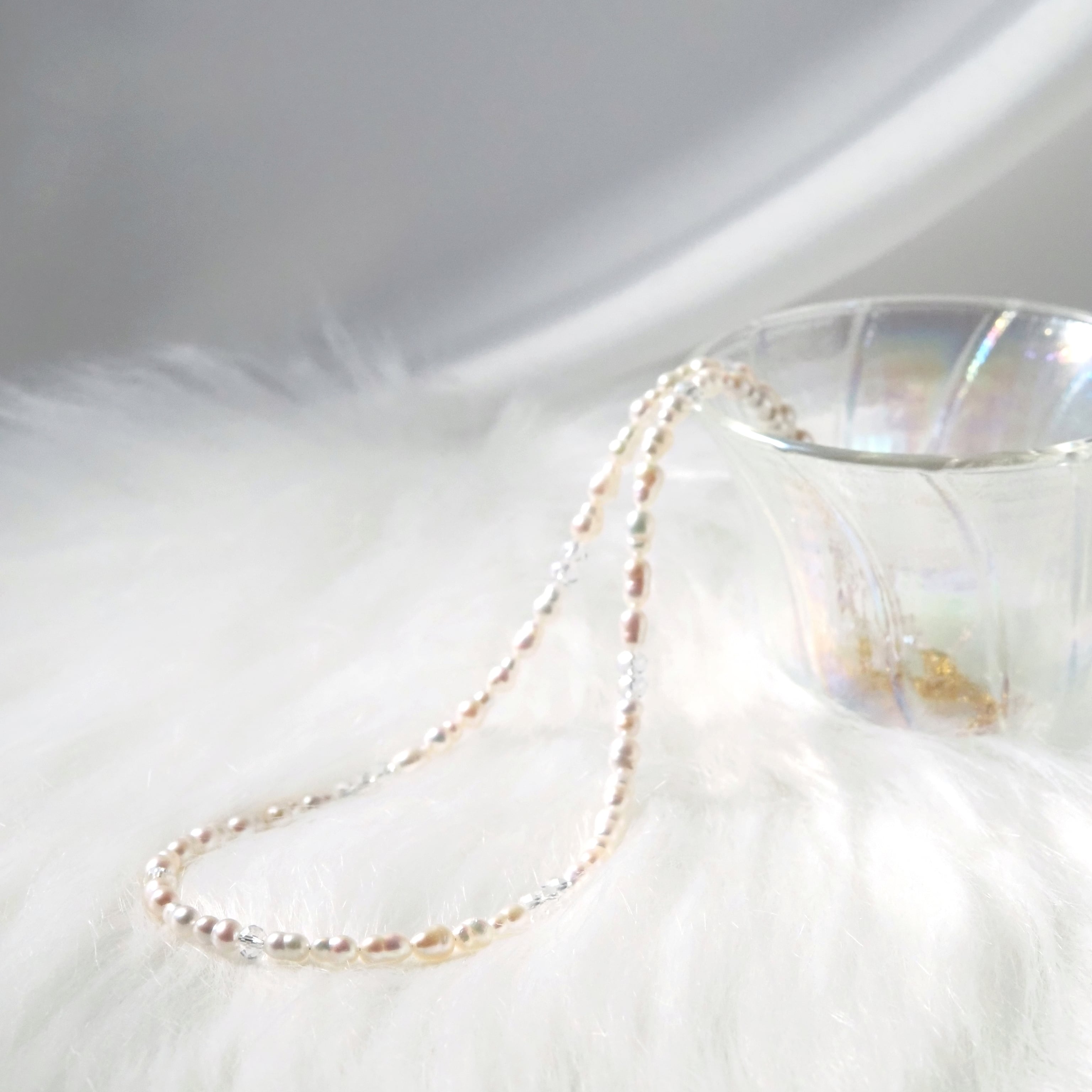 雪だるまのような形の小粒パールを贅沢に使ったネックレスです。