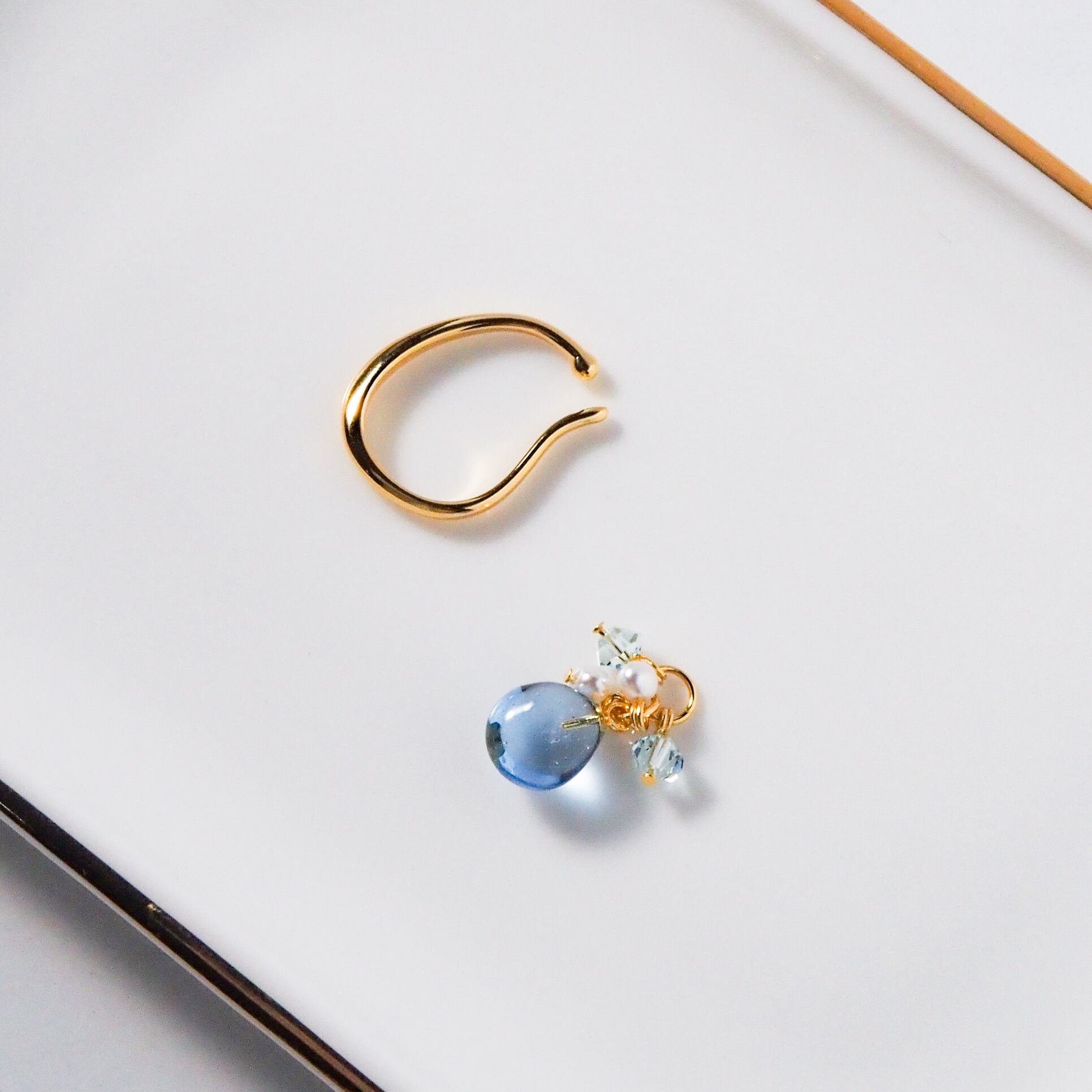 【3月誕生月カラー】スペシャルライン イヤーカフ│揺れるレジンピアスのハンドメイド通販