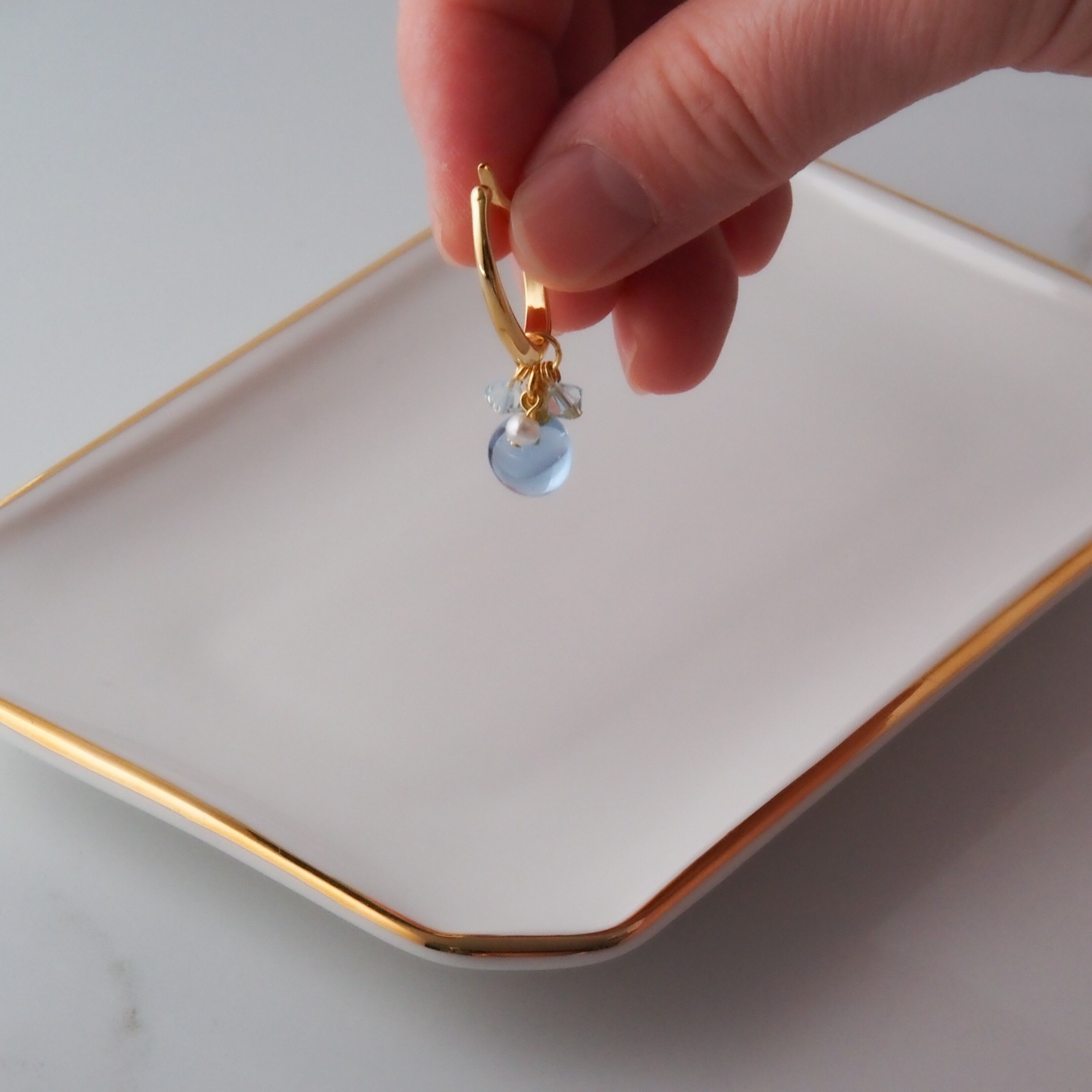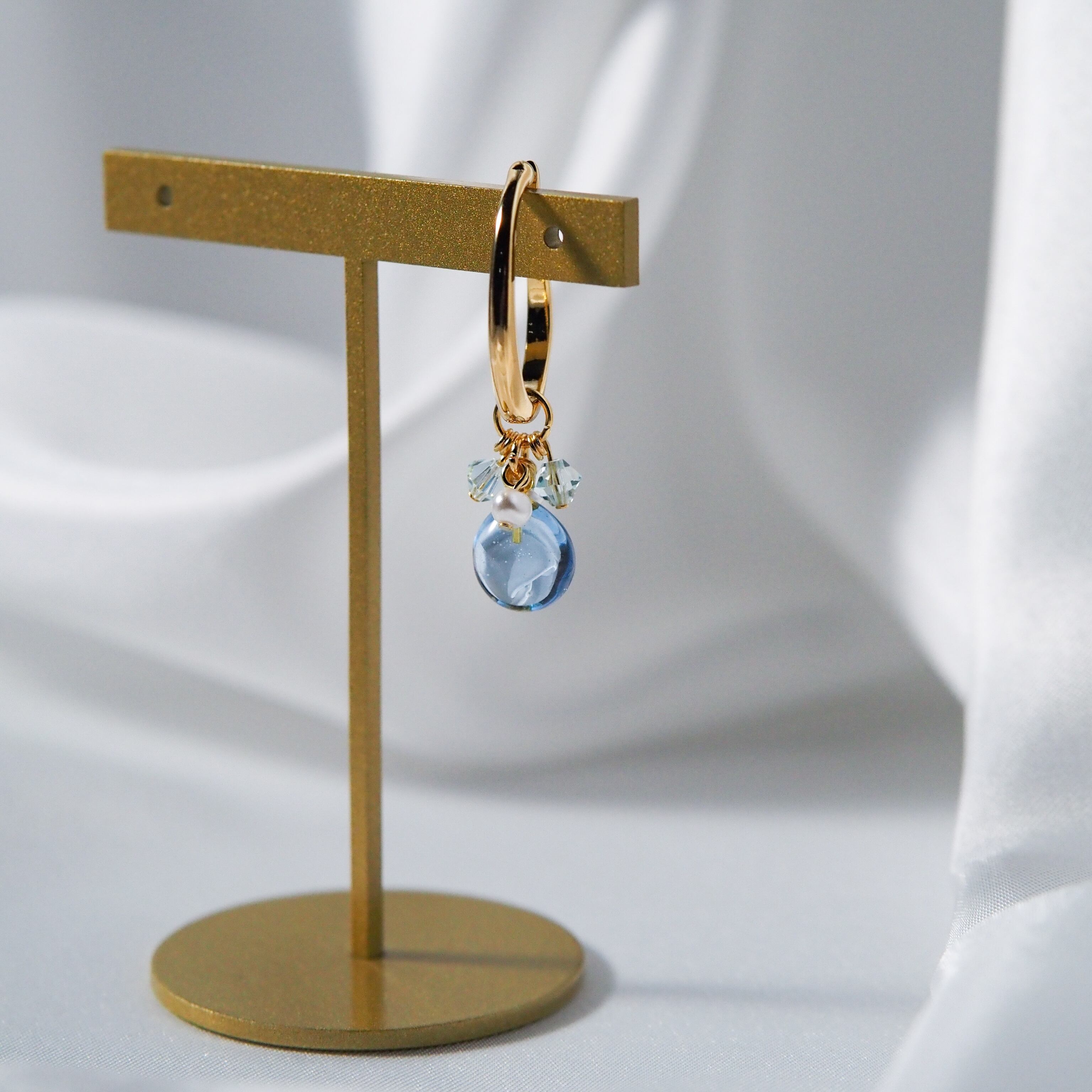 アクアマリンのやわらかな水色と、パールビーズのやさしい光沢。